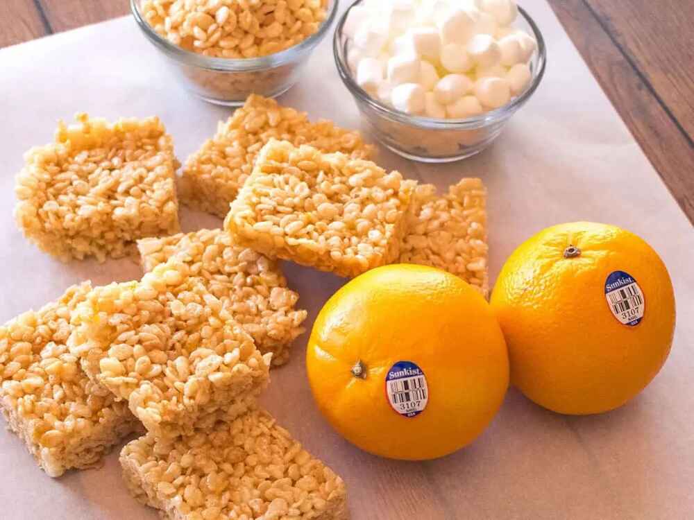 - ンキスト®ネーブルオレンジ果汁、すりおろした皮、バニラエッセンス、ミニマシュマロを加え、マシュマロが溶けるまで混ぜます。